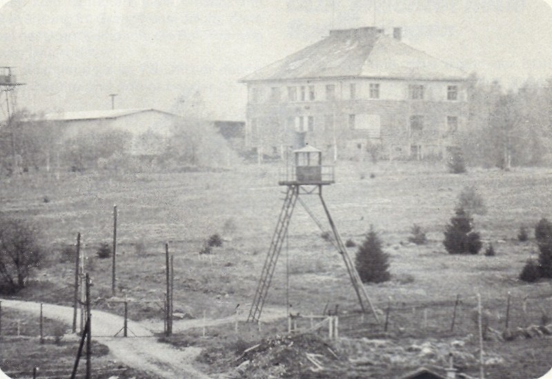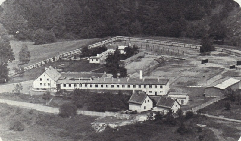 Blick von der Burg Hohenberg auf die Unterkunft der Grenzkompanie der CSSR Eichelberg (Dubina)