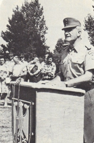 Brigadegeneral Dr. Teichmann spricht am Tag der offenen Tür zu den Angehörigen des BGS in Ratzeburg