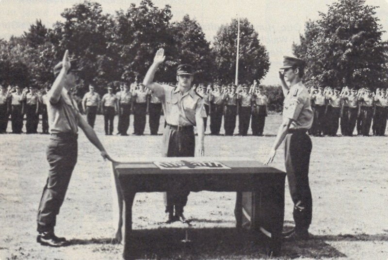 245 Dienstanfänger aus Fulda, Alsfeld und Bad Hersfeld bei der Vereidigung am 08.August 1975 in Alsfeld
