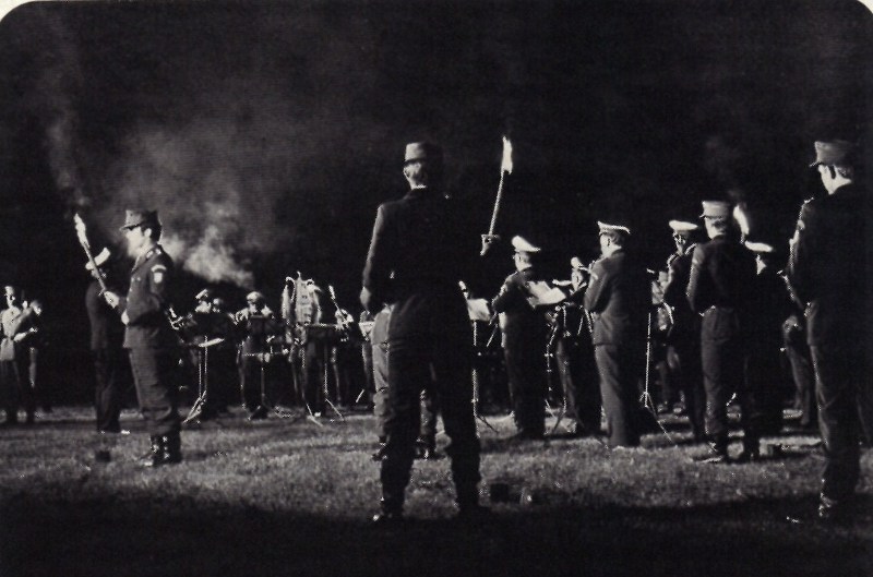 Ein BGS-Musikkorps musiziert beim Fackelschein