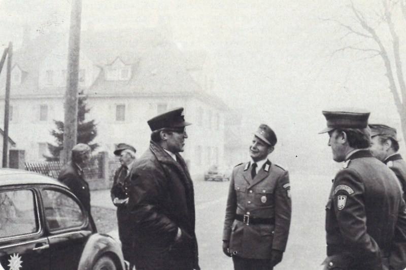 Beamte des Bundesgrenzschutz und der bayrischen Grenzpolizei bei einem Erfahrungsaustausch bei der GSA II / 1 Nabburg