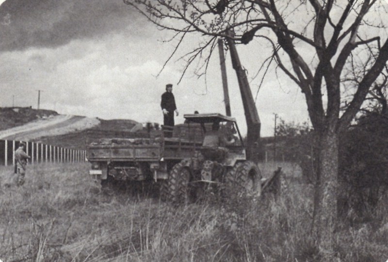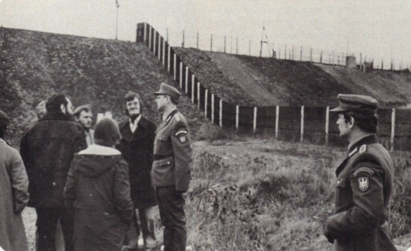 Abteilungskommandeur Bernhard erläutert Besuchern die Grenze zur DDR bei Dankmarshausen