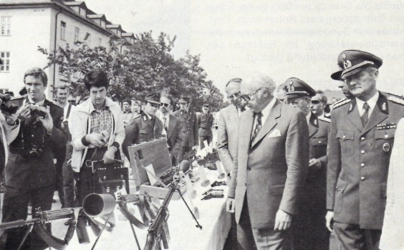 Bundespräsident Walter Scheel bei einer Waffen-Präsentation in Coburg