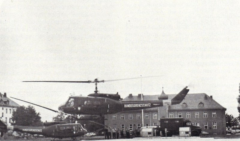 Mit dem Hubschrauber verläßt der Bundespräsident den Standort Coburg