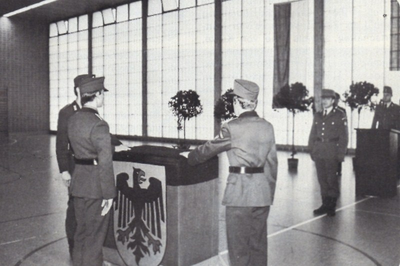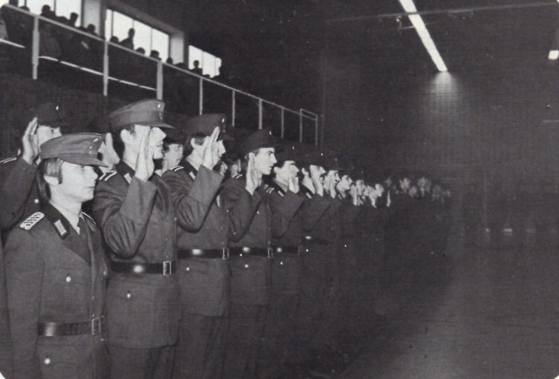 Vereidigung am 25.11.1977 im Standort Fuldatal 27 Dienstanfänger der GSA III / 4 Eschwege und 65 der Fernmeldehundertschaft GSK Mitte Fuldatal wurden vereidigt