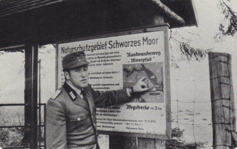 Der Kommandeur der GSA III / 2 Kohler erklärt den Rundwanderweg Moorpfad in der Hochröhn, nahe der Grenze zur DDR