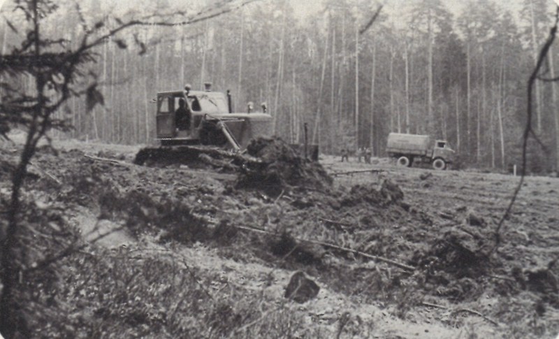 Arbeitskommandos der DDR mit schwerem Gerät bei Räumungsarbeiten im Bereich Oerlenbach