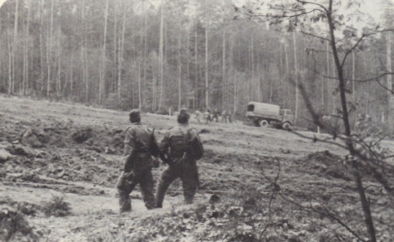 Grenzer der DDR überwachen die Arbeiten des Arbeitskommandos