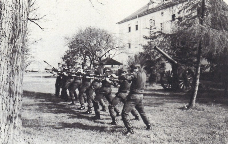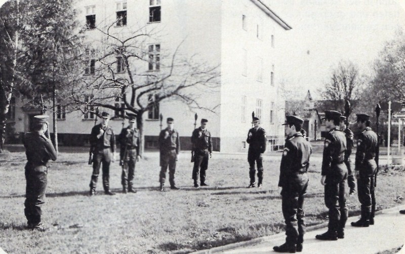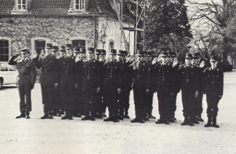 Vereidigung von 22 Dienstanfängern bei der GSA T West im Hof von Schloß Gymnich am 24.02.1977