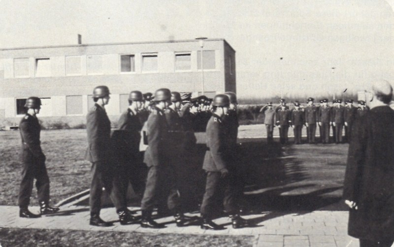 Kameraden tragen den Sarg ihres am 16.02.1977 verunglückten Kameraden Werner Kempf zur Trauerfeier der Abteilung