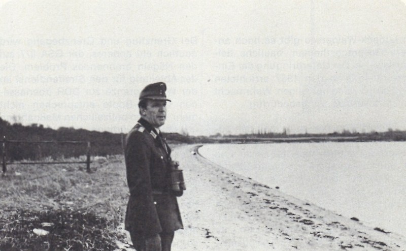 Oberstabsmeister i. BGS Walter Schumann am Seeufer der Lübecker Bucht der Grenze zur DDR