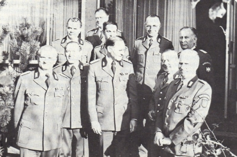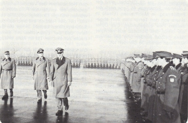 Kommandeur A. Rudlof vom GSK Mitte schreitet die Front der in Alsfeld angetretenen BGS-Hundertschaften ab Links PD Nahrstedt, Mitte scheidender Kommandeur LtdPD Grunwald