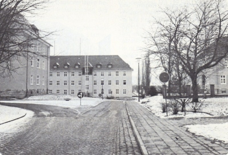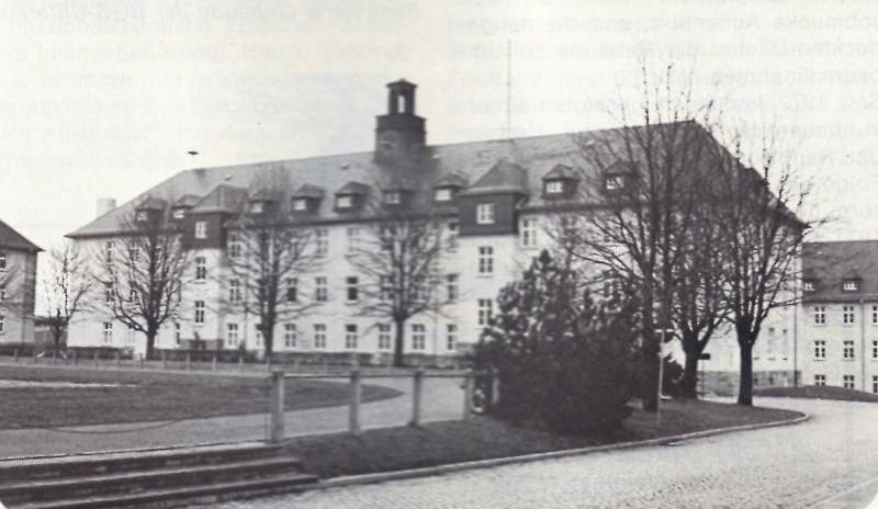 Blick von der Stadt her zu den renovierten Gebäuden der BGS-Unterkunft in Eschwege Gebäudekomplexe innerhalb der BGS-Unterkunft Das neue Wachgebäude Block der ehemals 12. Hundertschaft An Stelle der früheren Ausbildungs- und Turnhalle entstand diese geräumige Turnhalle für den Standort Eschwege