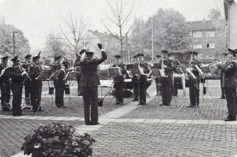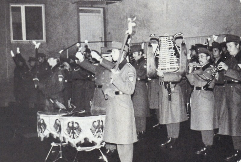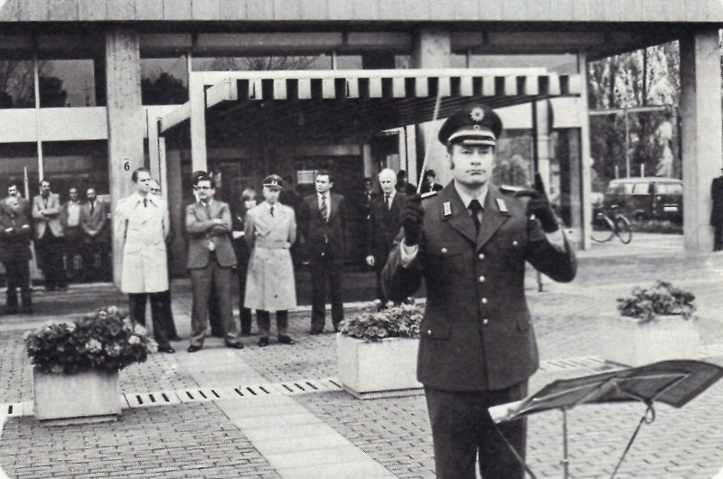 Zum Geburtstag am 28.10.1978 von Bundesinnenminister Gerhart R. Baum spielte Das Musikkorps der GSk Mitte . . . . . .unter Leitung von PHK Deeg auf dem Gelände des Ministeriums und umrahmte so die Glückwünsche des BGS