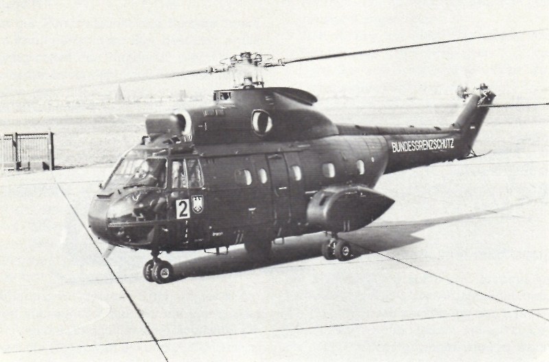 SA 330 (Puma) Triebwerk: 2x 1160 kW, 230 km/h, Max. Abfluggewicht: 7400 kg, Zugelassen für 21 Personen