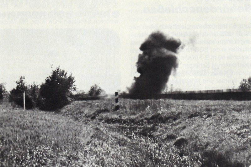 Sprengung von "PMK-40"-Minen im zweireihigen Metallgitterzaun, mit anschließender Neuverminung