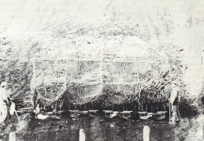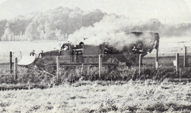 Rechte Seitenansicht des in Tätigkeit befindlichen Minenlegepanzers (Artillerieschlepper " AT-T") mit Sonderaufbau
