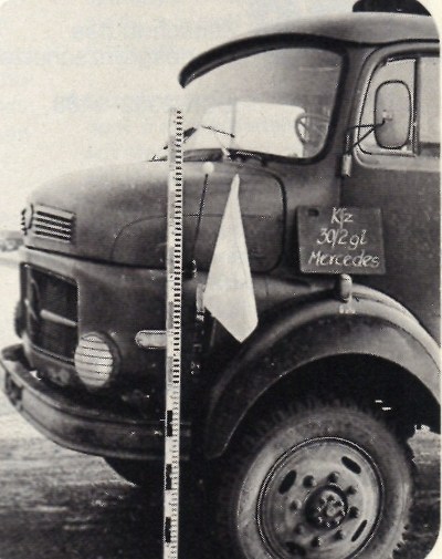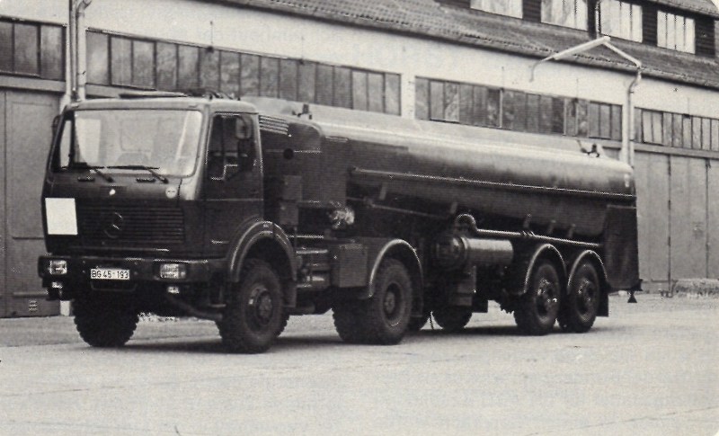 Größtes und längstes Kfz des BGS: Tanklastzug mit Auflieger für 20 000 Ltr. Benzin. Gew. 30 t. DB- Zugm. 1626 AS, 256 PS