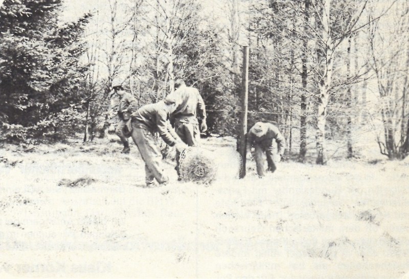 Soldaten der csl. Grenzwache beim Bau eines Maschendrahtzaunes im Gebiet ostwärts Asch