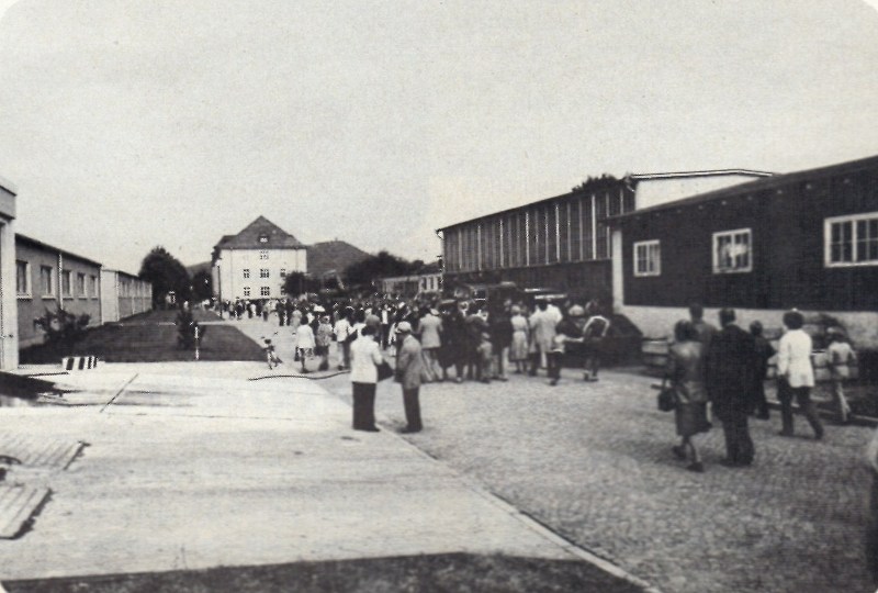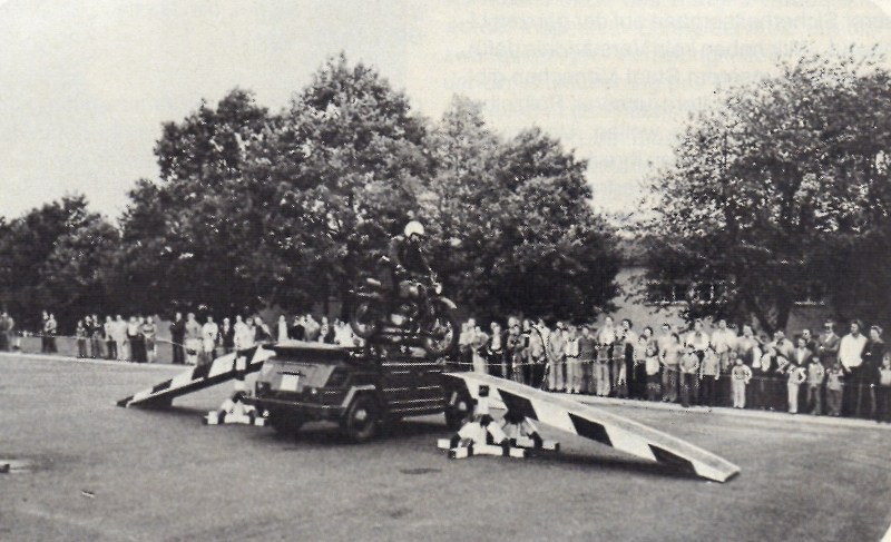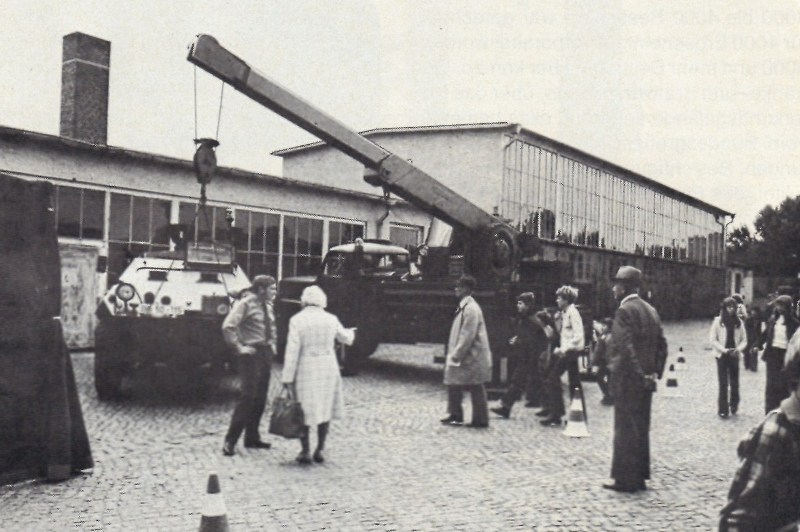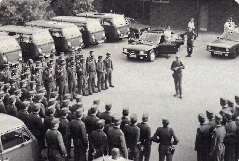 Tag der offenen Tür im BGS-Standort Eschwege 1978 Zum "Tag der offenen Tür" der mit Blumen geschmückte Eingangsbereich Zu Besuch in Eschwege: Staatssekretär von Schoeler, Direktor i. BGS Gründemann und Inspekteur Kurt Schneider (vorne von links) Vorführung einer Motorradstaffel: Sprung mit dem Krad von Rampe zu Rampe über einen Kübelwagen Schüler spielen mit Begeisterung Kommandant und Fahrer auf den geschützten Fahrzeugen Nicht nur Kinder, auch Oma und Opa interessieren sich für die Technik des BGS an diesem Tag Für Eventualitäten vor dem Besucheransturm aufgebaut. Der Abteilungsverbandplatz Die Veranstaltung des BGS- Standortes Eschwege neigt sich dem Ende: Der Besucherstrom strebt zum Ausgang