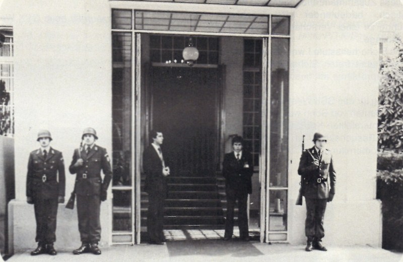 Der Bundesgrenzschutz stellt die Ehrenposten vor dem Palais Schaumburg Bonn